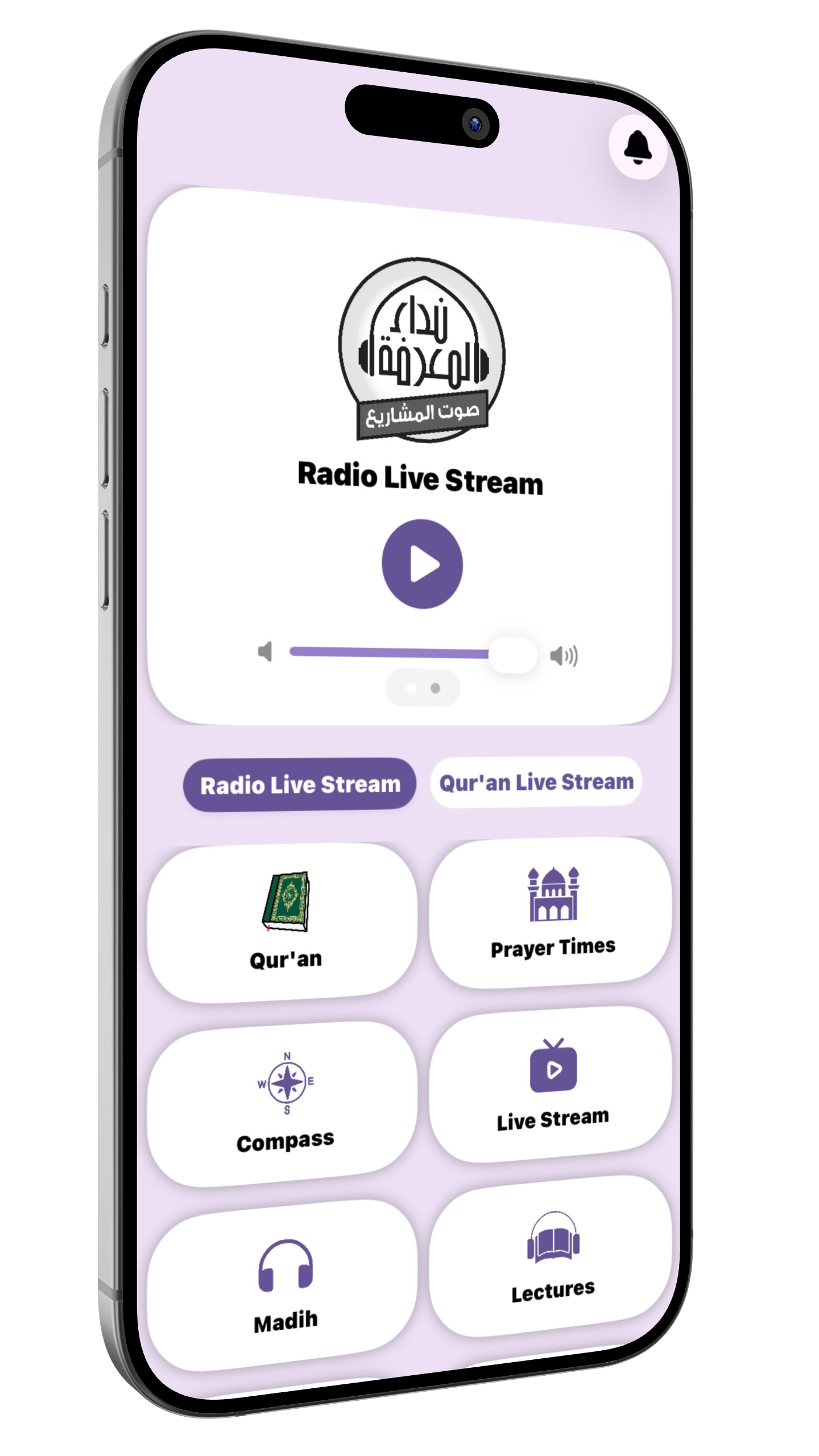 استمتع بالبث المباشر وأحدث الحلقات وأوقات الصلاة وكل محتوى نداء المعرفة في تطبيق واحد متكامل